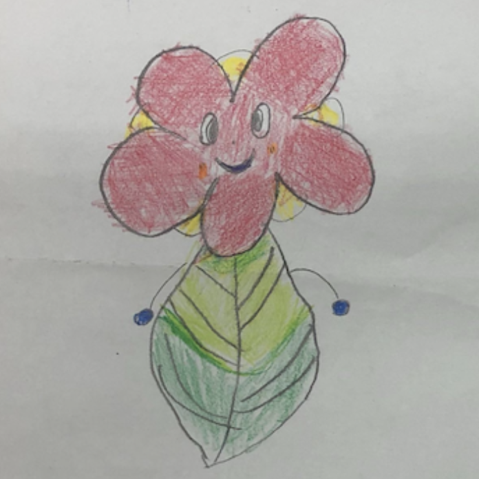 本日ご紹介する作品は、和歌山県伊都郡のかつらぎ町立笠田小学校3年生、松山志保さんの「花を咲かせるロボット」です。「緑がないとさみしい」という想いから描いてくれました。いつでもどこでも、好きな花が咲かせられるロボットがいたら、どんなことが起きるでしょう…?