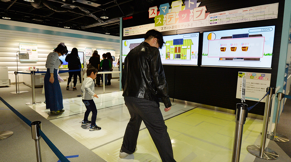 足元に映し出されるアイテムをゲットし、オリジナルのスマートハウスを作っていく「スマートステップ」など、ゲーム要素を取り入れた展示が盛りだくさん。科学館というより、「かしこいゲームセンター」という感じだ。