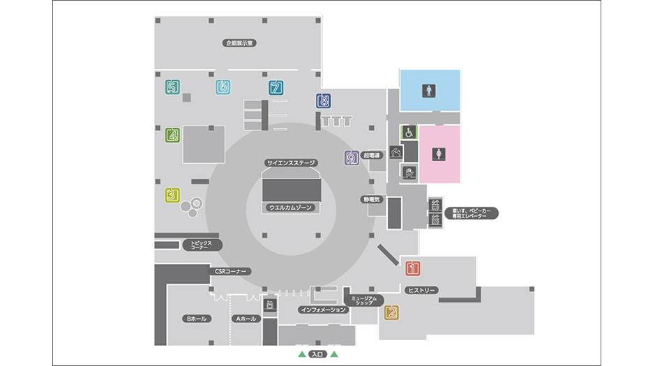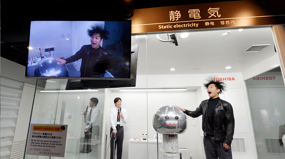 館内は、3つのゾーンに分かれている。東芝のあゆみを振り返る「ヒストリーゾーン」。科学がもたらす未来の世界を体験する「フューチャーゾーン」。そして、実験やワークショップを通じて、子ども達が科学を楽しく学べる「サイエンスゾーン」だ。