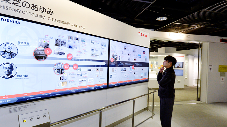 続いては、東芝のあゆみを振り返る「ヒストリーゾーン」。東芝の誕生秘話や、人々の暮らしを変えてきた家電の歴史について解説している。